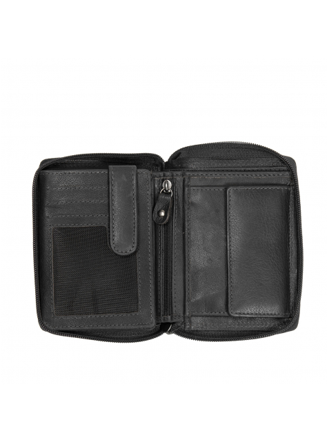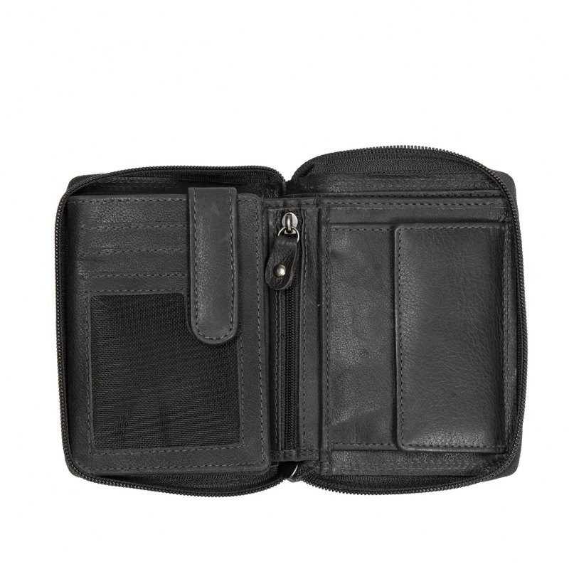 Vnútorná časť peňaženky je zopnutá prackou, má veľké okienkové priečinky vyhujúce aj dokladom staršieho formátu. Priestranný zipsový priečinok v strede umožňuje vkladať do vnútra karty a doklady po oboch stranách.