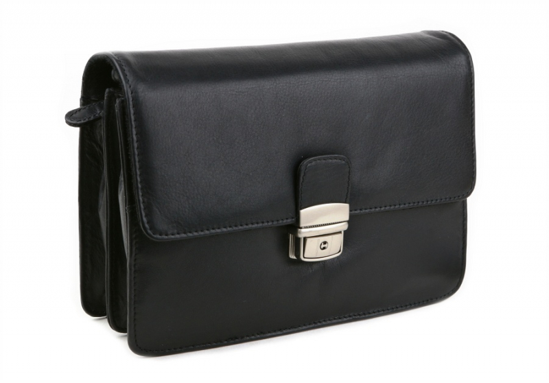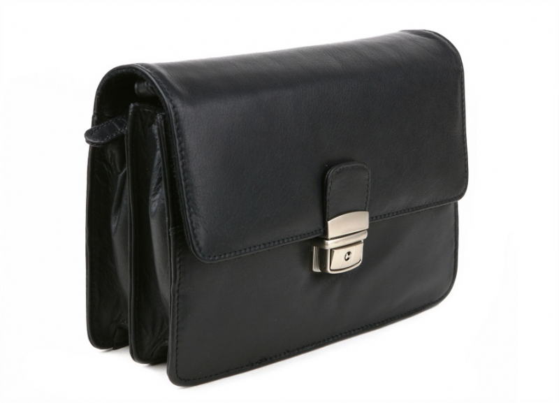 Kožená pánska taška na doklady BRANCO s prednou chlopňou. Nosenie v ruke alebo za bočnú rúčku, spodná časť poklopu brúsená koža.