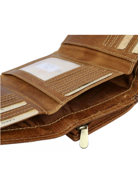 Kožená peňaženka SECRET v elegantnom koňakovo-hnedom farebnom tóne. Táto priestranná a praktická peňaženka rozmerov 14,5 x 10 cm, patrí k obľúbeným strihom dámskej peňaženky. Oceníte veľký mincovník rozdelený na 2 priehradky, mnoho kartových priečinkov (14) a vizuálne prehľadné usporiadanie. Peňaženka je vyrobená z kvalitnej hovädzej kože, ktorá sa vyznačuje svojou pevnosťou, stabilným tvarom a mramorovanou farebnou úpravou.