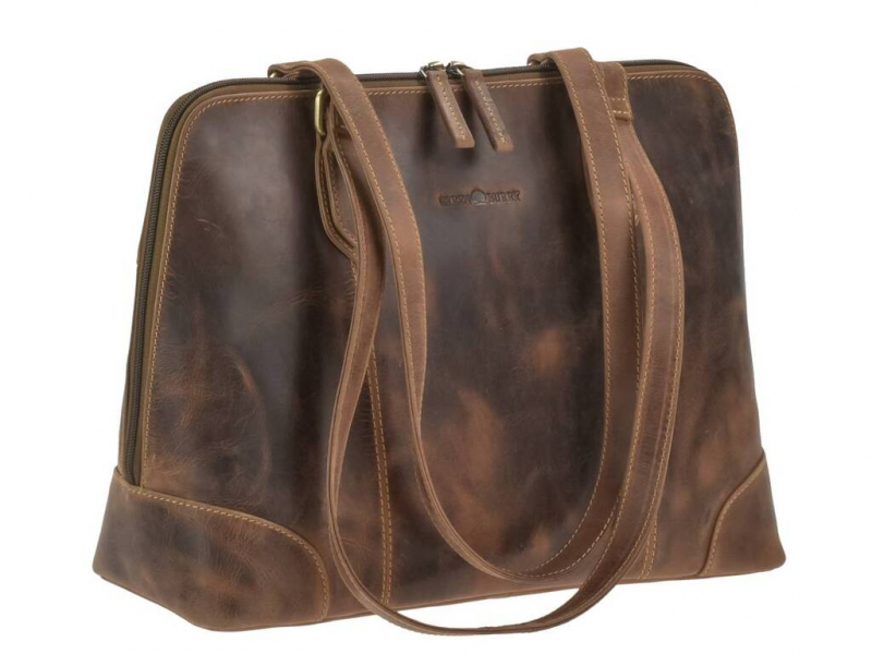 Dámska kožená kabela Greenburry CITY SHOPPER VINTAGE rozmerov 37 x 27 x 12 cm. Vhodná aj pre nosenie notebooku a dokumentov A4.