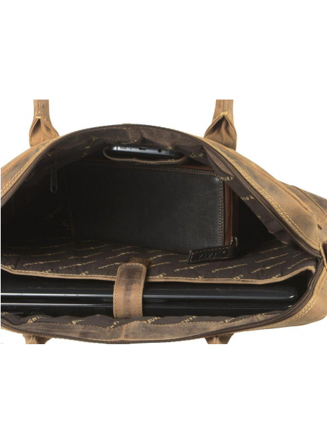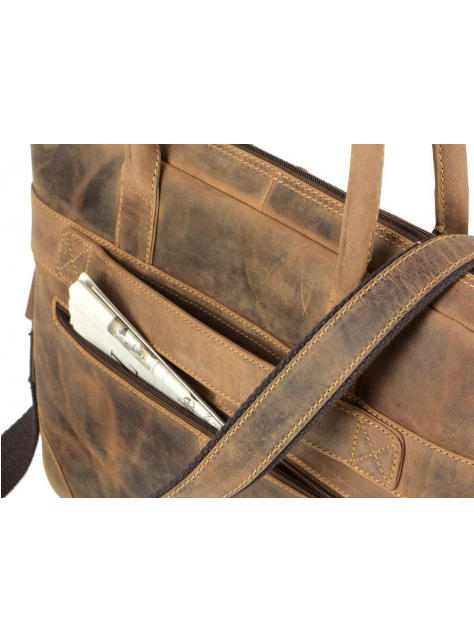 Dámska kožená taška GreenBurry Vintage formátu 41 x 29 x 8 cm je určená na dokumenty A4, notebook a bežné osobné veci.