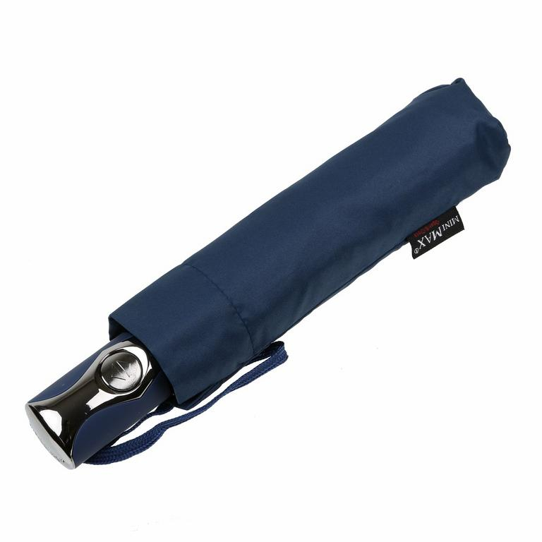 Tmavomodrý skladací dáždnik MINIMAX® s plnoautomatickým otváracím a zatváracím systémom a odolnosťou voči vetru.