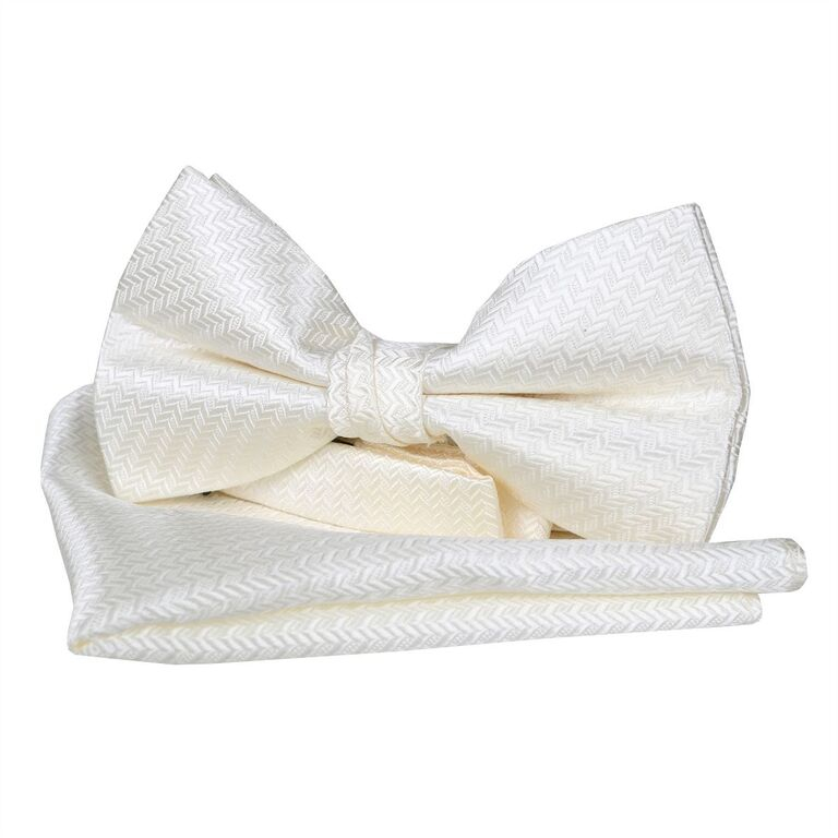 Elegantná pánska spoločenská súprava - smotanový motýlik a vreckovka s tkaným vzorom.