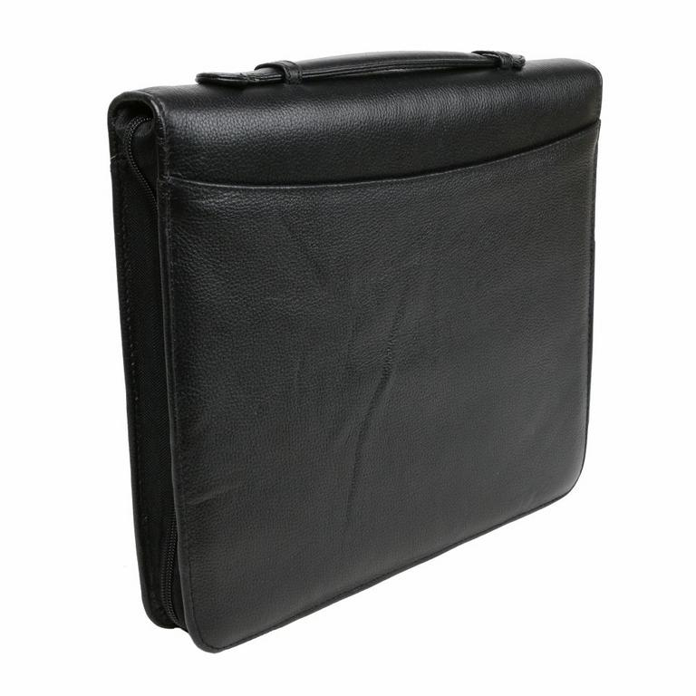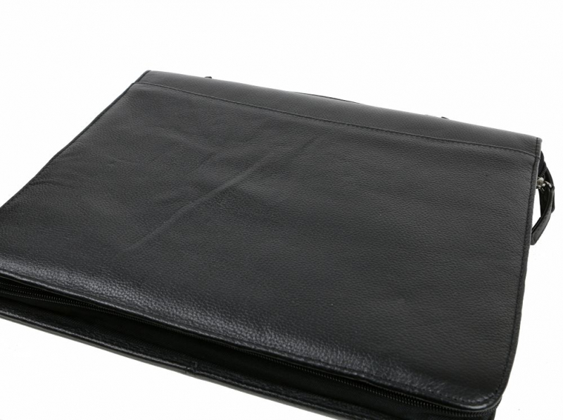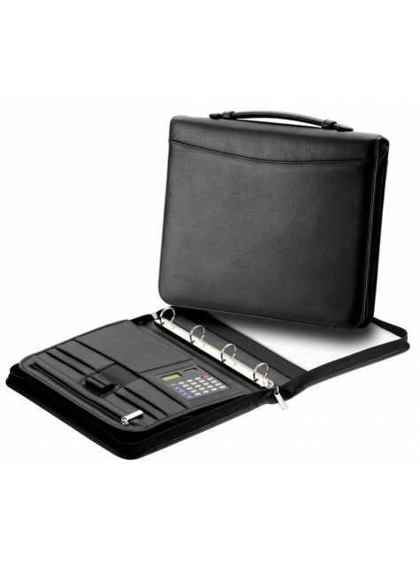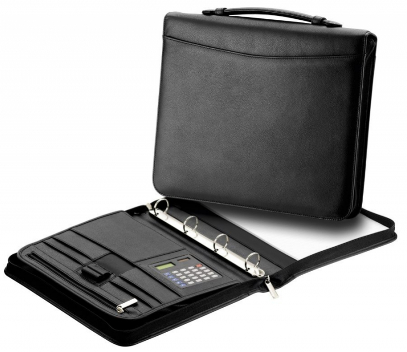 Kožená spisovka veľkosti A4 s rúčkou. Klasické prevedenie s poznámkovým blokom aj kalkulačkou.