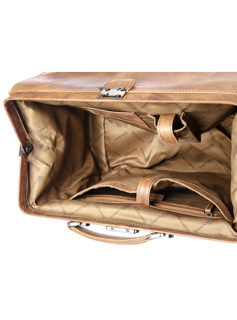 "Lekársky" kufrík v hnedej farbe GREENLAND Light Nature. Veľký úložný priestor sa uzatvára na zaklapovací uzamykateľný kovový zámok.