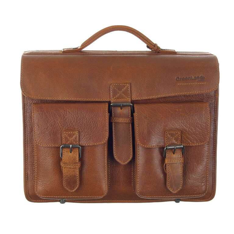 Priestraná pánska aktovka zn. GreenLand SCHULMEISTER z vysokokvalitnej byvolej kože v prírodnej úprave.