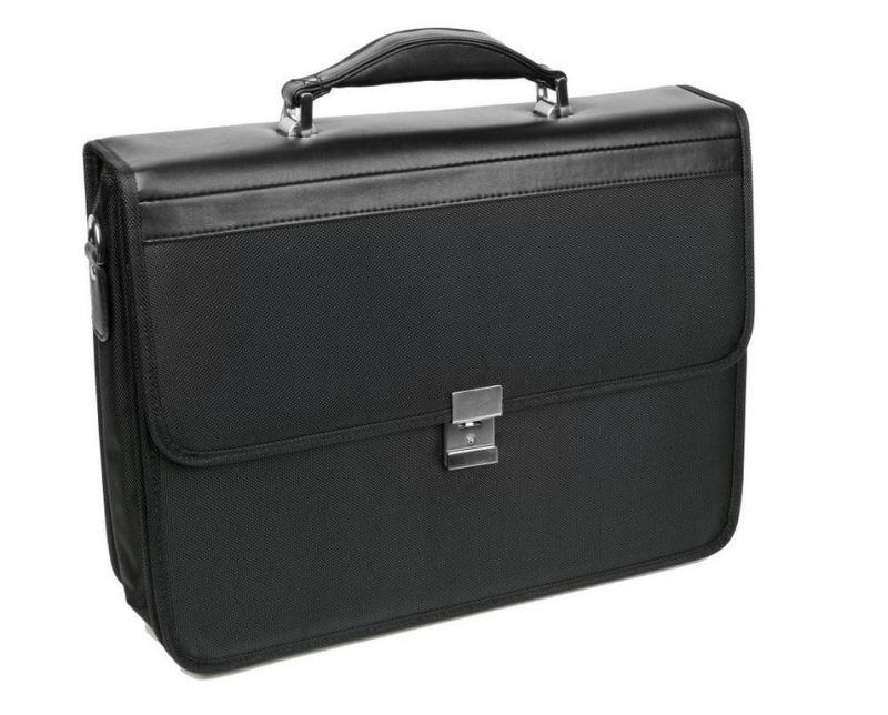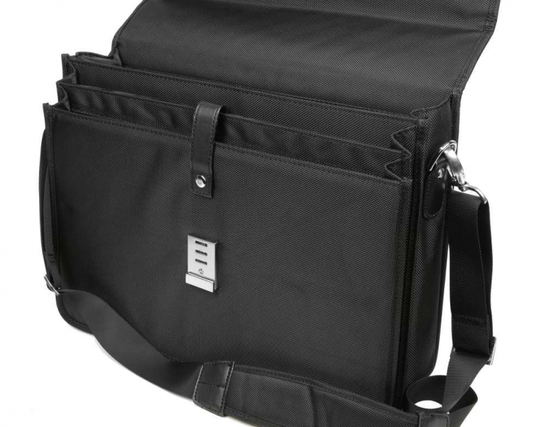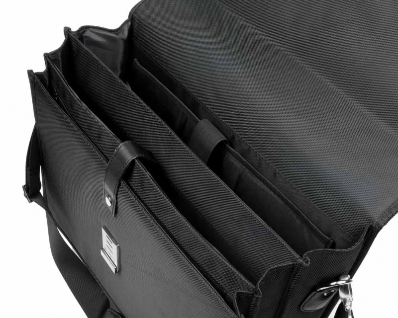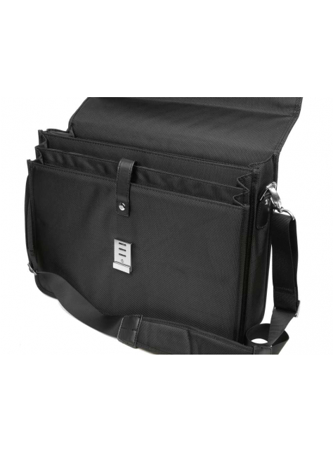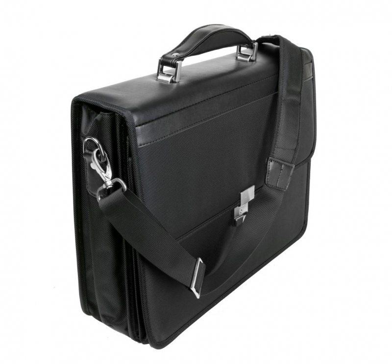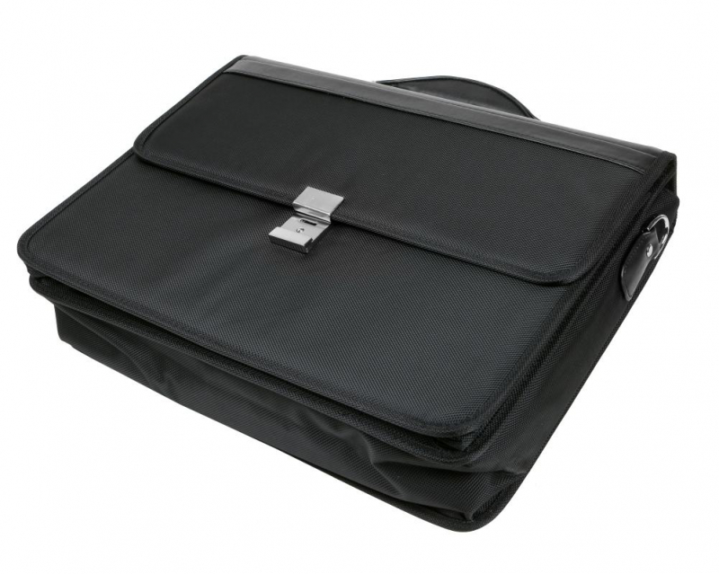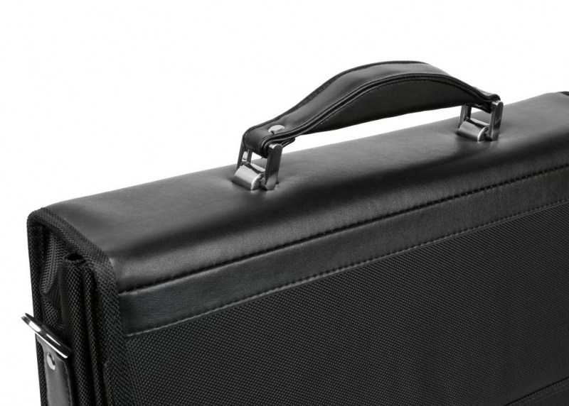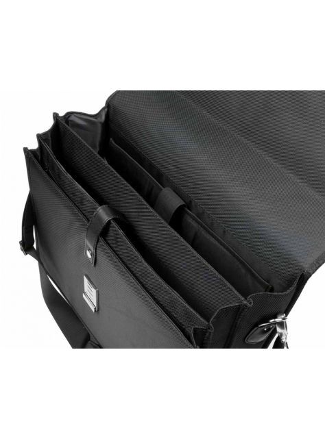 Aktovka na dokumenty a notebook DN rozmerov š 43 x v 32 x 16 cm z vysoko-odolného nylonu 1680D a koženky. Bezproblémové prenášanie dokumentov formátu A4 a vypodložený a polstrovaný priečinok pre notebook.