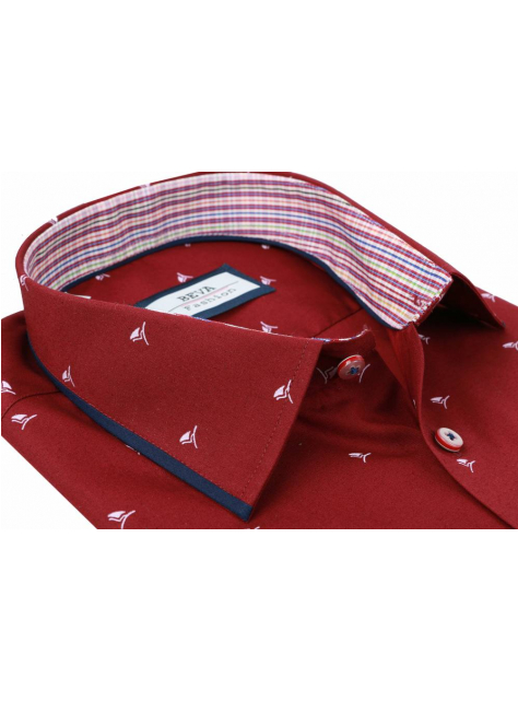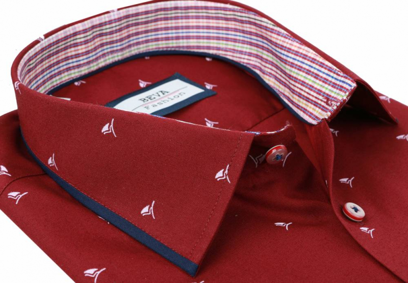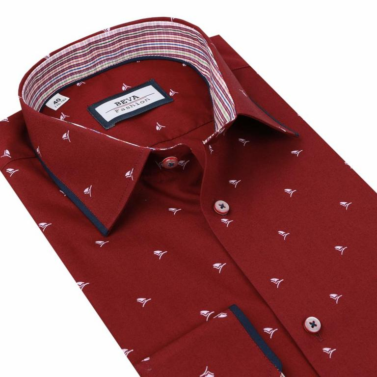 Trendová pánska košeľa zn. BEVA FASHION v slim strihu - bordová farba. Nadčasová košeľa s moderným vzorom s dlhým rukávom.