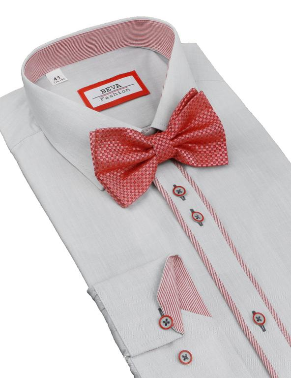 Pánska slim košeľa BEVA šedá s červeným lemom