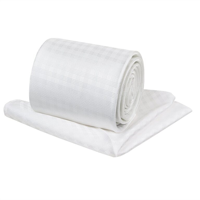 Elegantný pánsky kravatový set ORSI 2- dielny - biely s tkaným mriežkovaným vzorom a perleťovým odleskom.