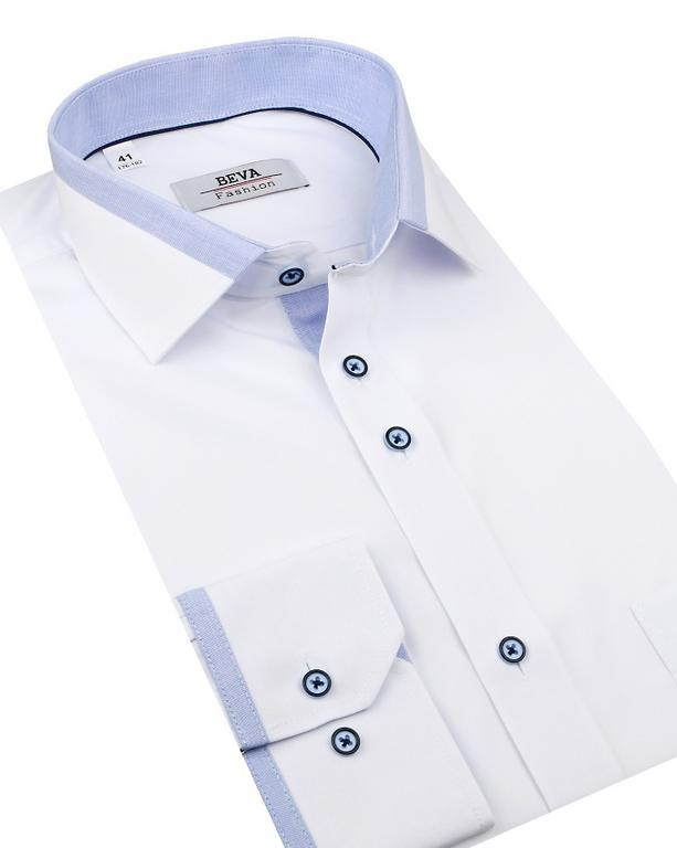 Pánska košeľa BEVA KLASIK biela s modrým lemom
