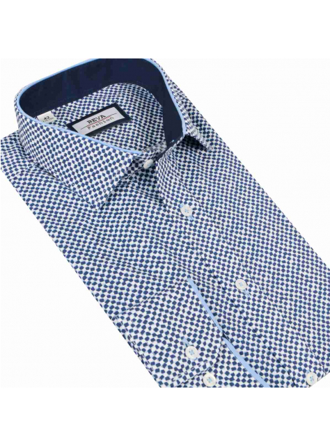 Pánska slim košeľa BEVA bielo-modré kocky T2035