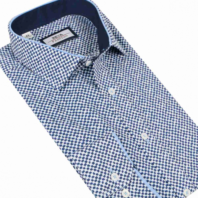 Trendová pánska slim košeľa BEVA Fashion s dlhým rukávom v športovo-elegantnom štýle. Vhodná na bežné nosenie, tiež do obleku s kravatou alebo motýlikom.