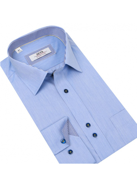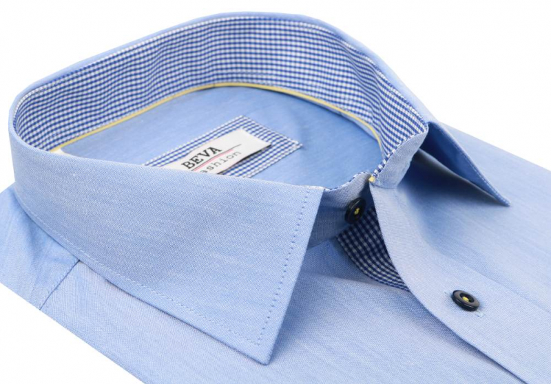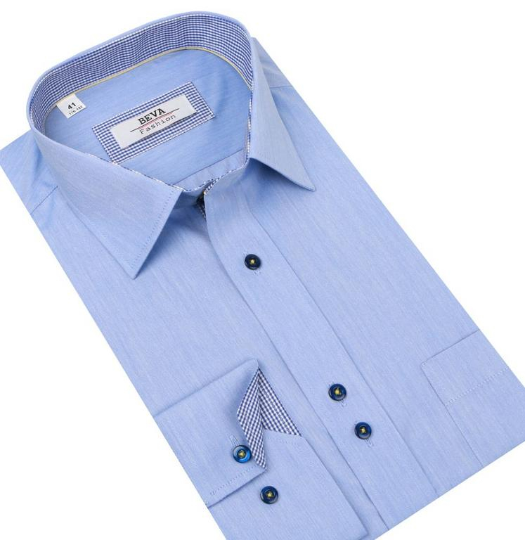 - pánska košeľa s dlhým rukávom, manžety na gombíky - bielo-modré kárované podšitie,