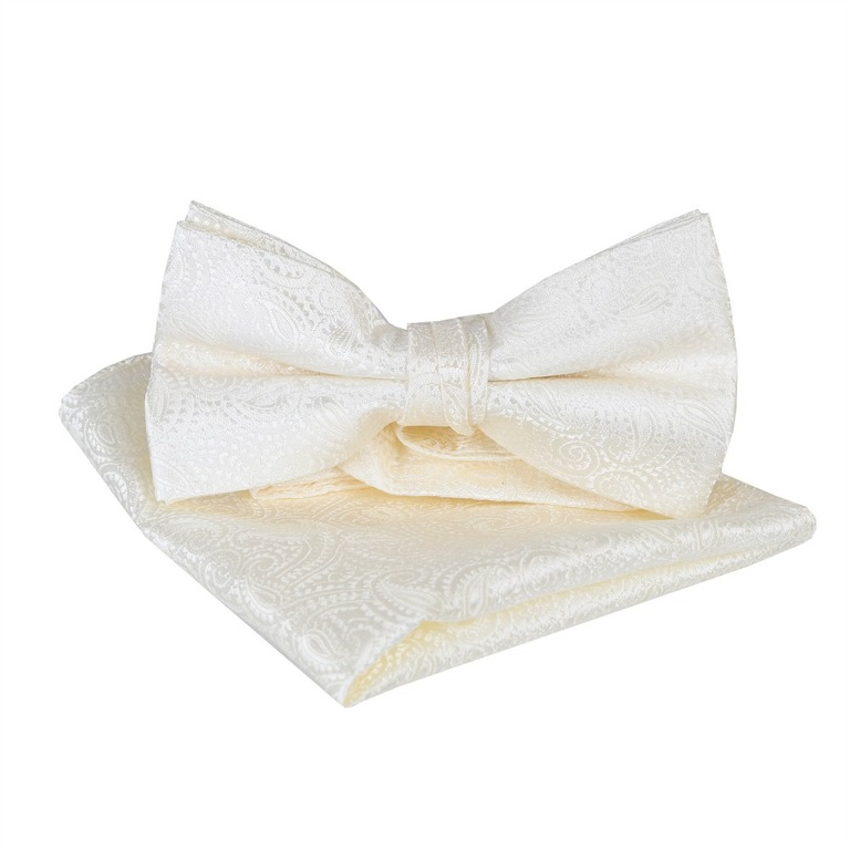 Pánsky motýlik a ozdobná vreckovka, súprava smotanová
