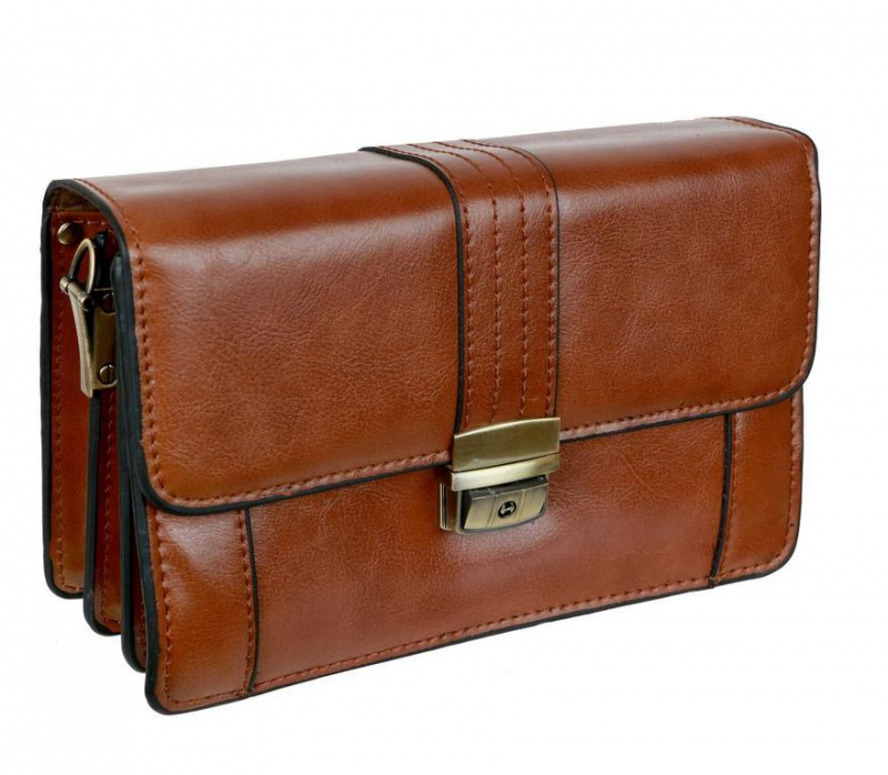 Pánska príručná taška - etue robustného vzhľadu vďaka pevnej hrubšej koži. Praktický formát s 3 otvorenými komorami a 2 zipsovými priečinkami.