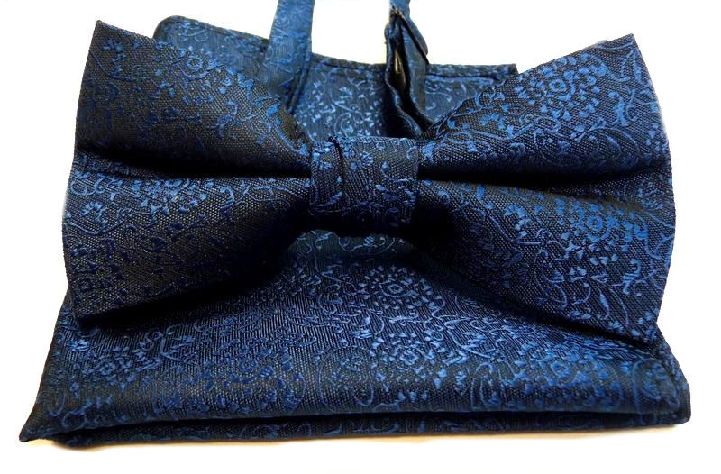 Pánsky motýlik a vreckovka ORSI, modrý ornament