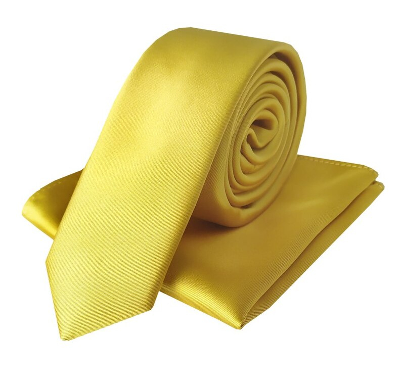 Súprava - Pánska slim kravata s vreckovkou ORSI žltá žiarivá