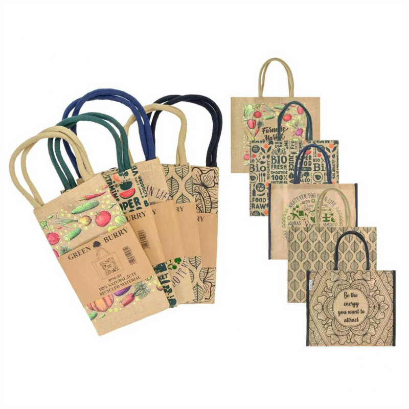 Štýlová nákupná taška z organickej juty zn. GreenBurry s potlačou - vlákno s vysokou a dlhodobou odolnosťou a pevnosťou (pevnejšie ako bavlnenené vlákno) - disponuje UV ochranou, odolnosťou voči nízkym teplotám, antistatickými vlastnostmi, odolná voči plesniam - dokáže výborne odolať všetkým rôznym mikroorganismom, jej využitie prispieva k ochrane životního prostredia - 100% ekologická, recyklovateľná.
