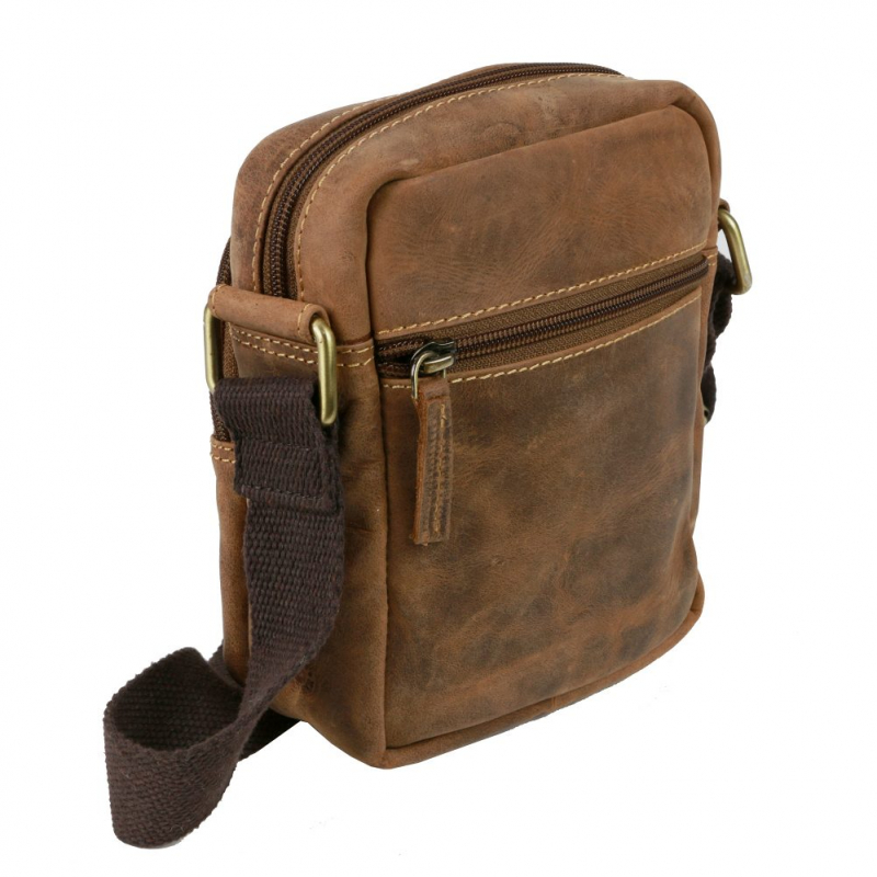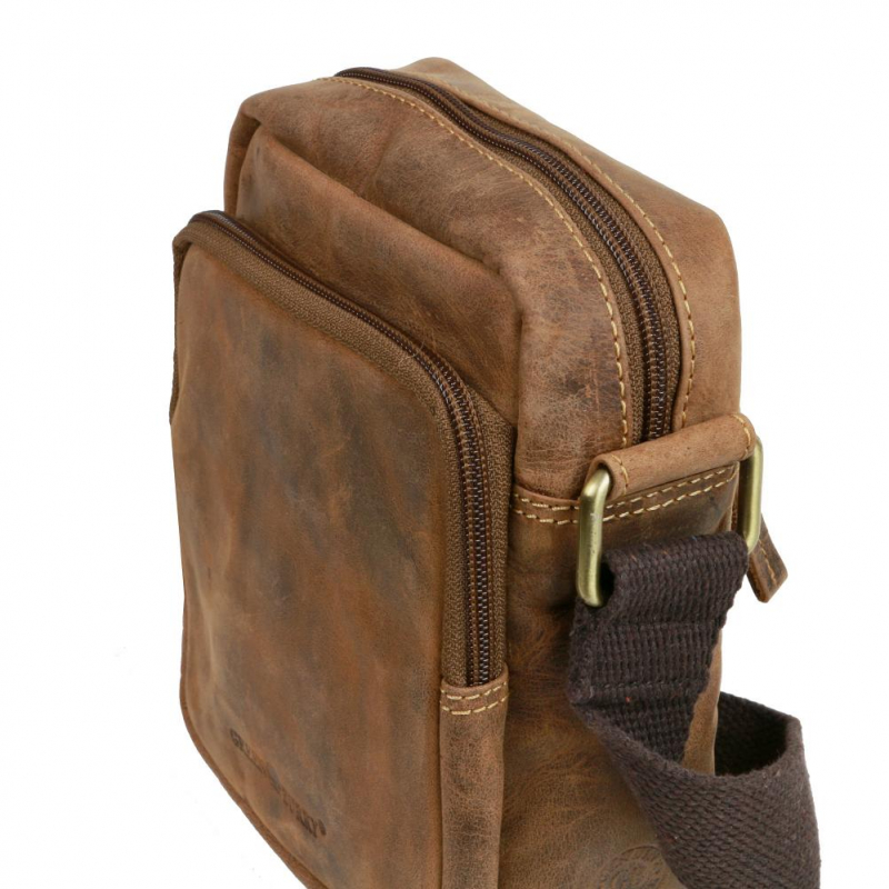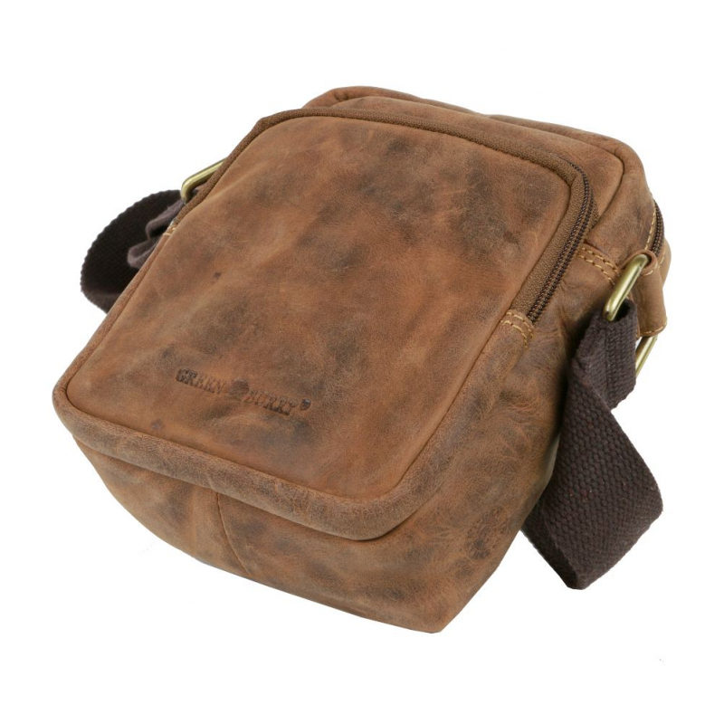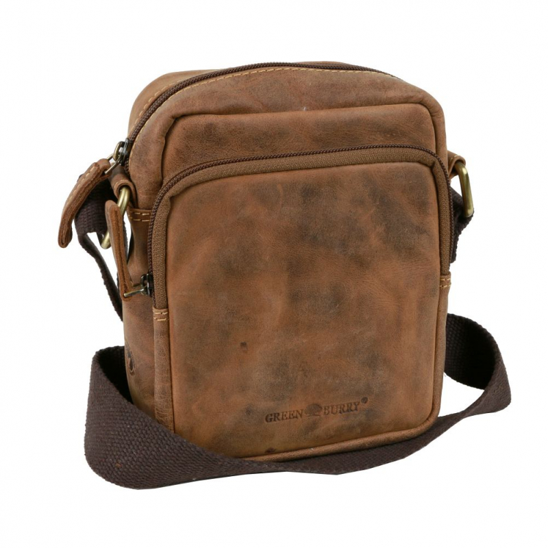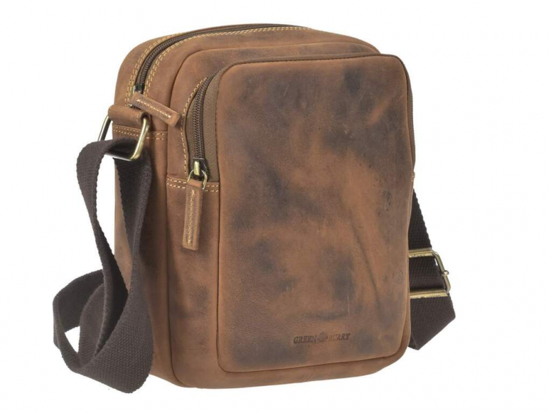 Kožená príručná taška zn. GREENBURRY z jemne brúsenej kože v rustikálnom vintage prevedení. Priestranná šikovná taška pre denné nosenie rozmerov 21 x 25 x 9,5 cm s uzatváraním na zipsy. Hlavný priečinok vhodný pre A5 formát - zošit, kniha, tablet.