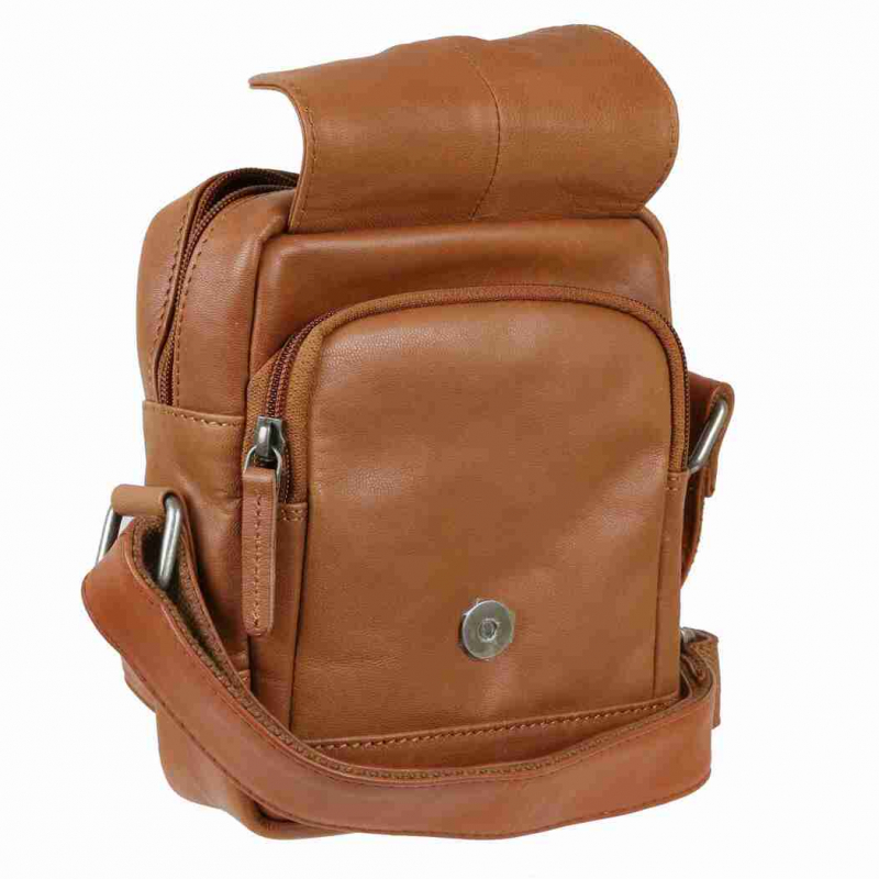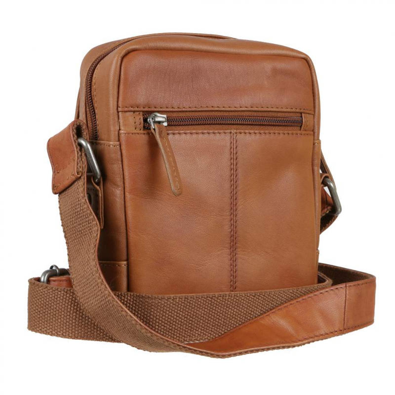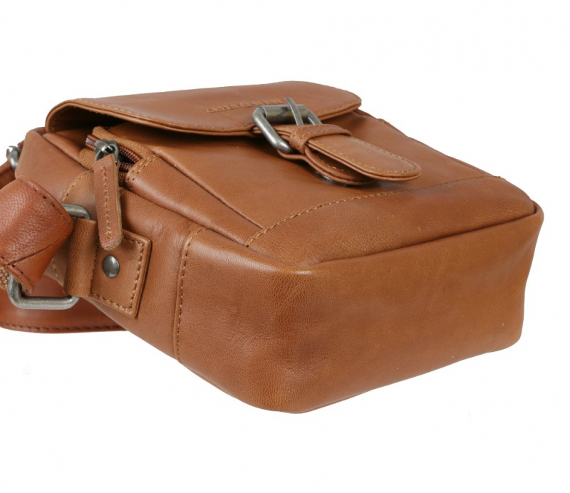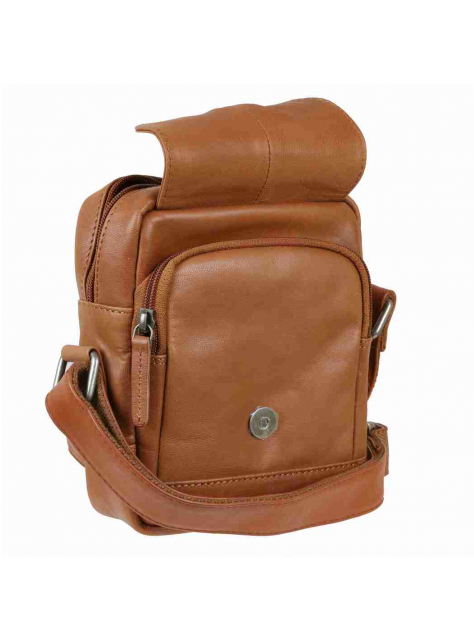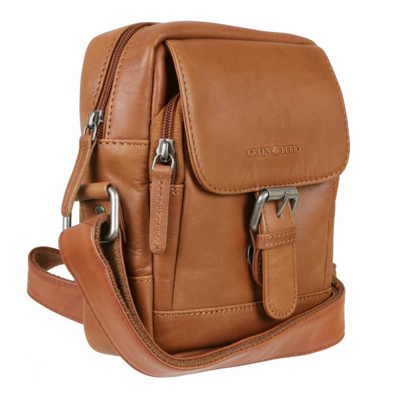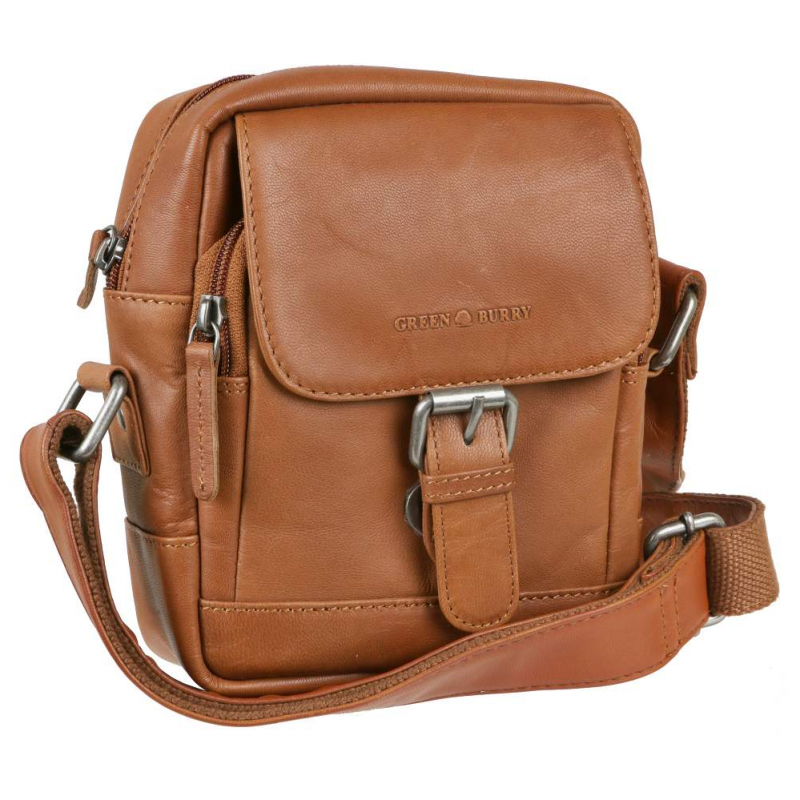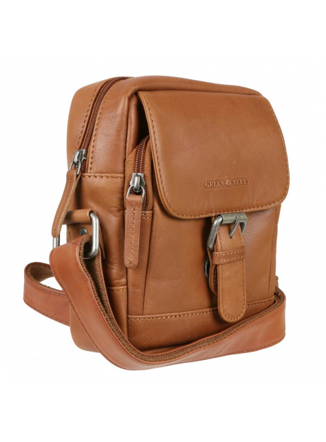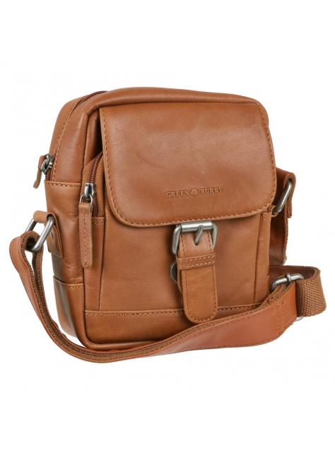 Kožená unisex taška na rameno GREENBURRY v príručnej veľkosti š 18 x v 20 x 9 cm v koňakovo-hnedej farbe. Taška v zaujímavom dizajne s dôsledne spracovanými detailami. je vhodná pre základné osobné veci.