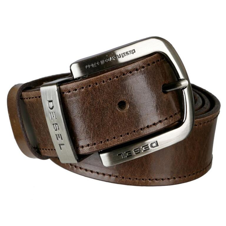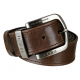 Tmavohnedý džínosový kožený opasok zn. MERCUCIO so štýlovou prackou DESEL, remeň s okrajovým štepovaním vyzdvihuje celkový dizajn opaska.
