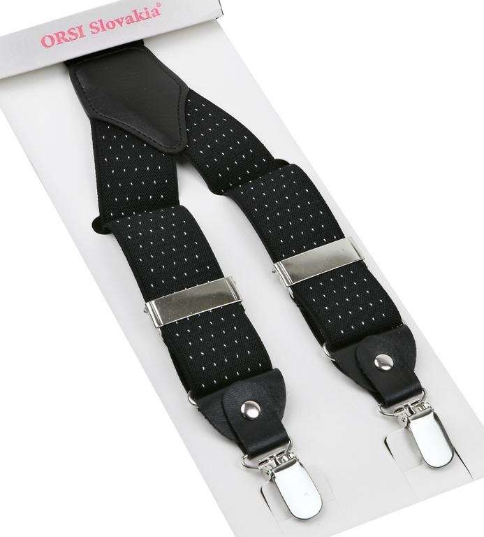 Pánske traky ORSI v krabičke - čierne bodkované, šírka 3,5 cm, Celková dĺžka - 110 cm (vrátane kovových klipsov).
