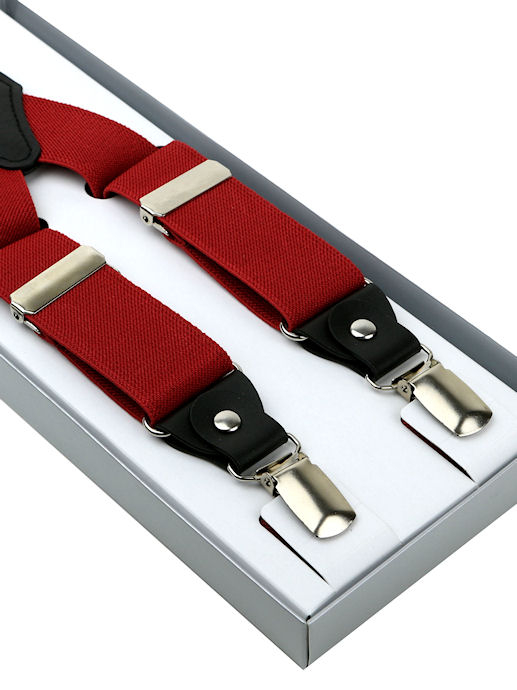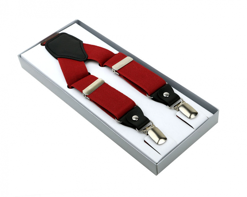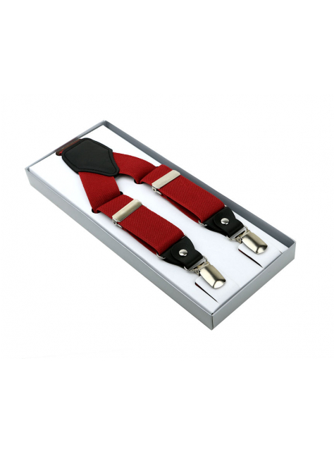 Pánske traky ORSI v krabičke - sýtočervená farba, šírka 3,5 cm, Celková dĺžka - 110 cm (vrátane kovových klipsov).