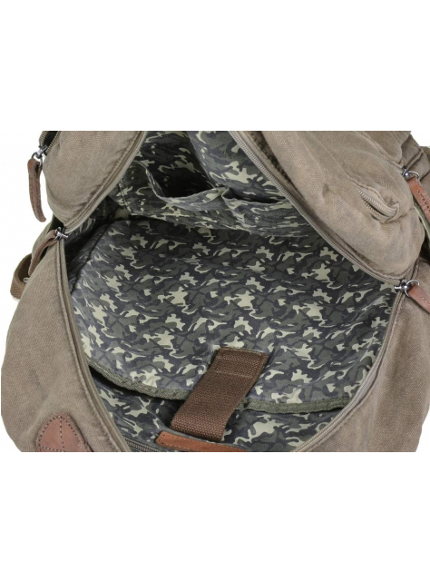 Vyrobený z canvasu - pevného materiálu s vysokou odolnosťou - ručne opracovaný a dokončovaný povrch dodáva taške nezameniteľný individuálny charakter. Kvalitné precízne vypracovanie, pevné plátno so zrnitou štruktúrou, zipsové bežce s koženými úchytmi, masívne polstrované popruhy, rukoväť z kože a hustotkaného canvasu.