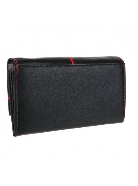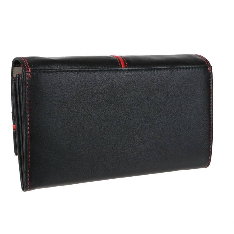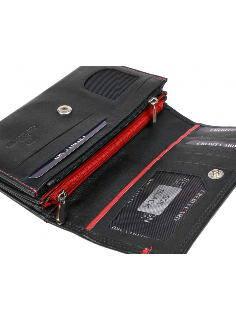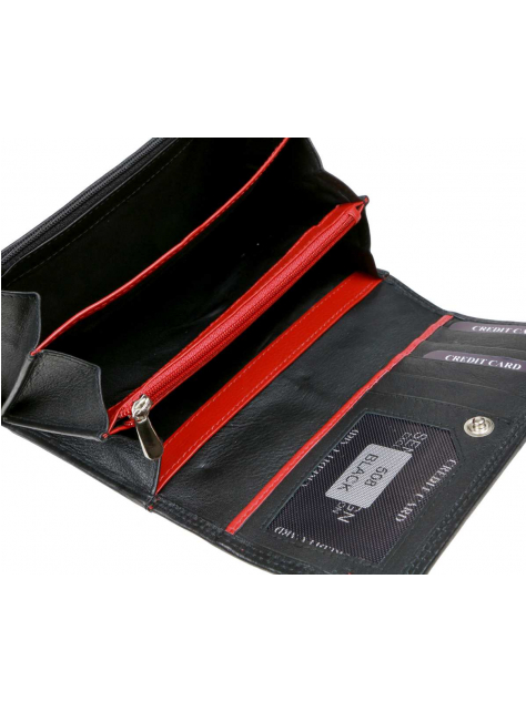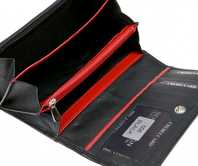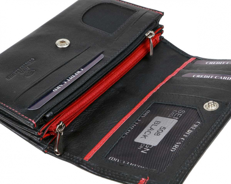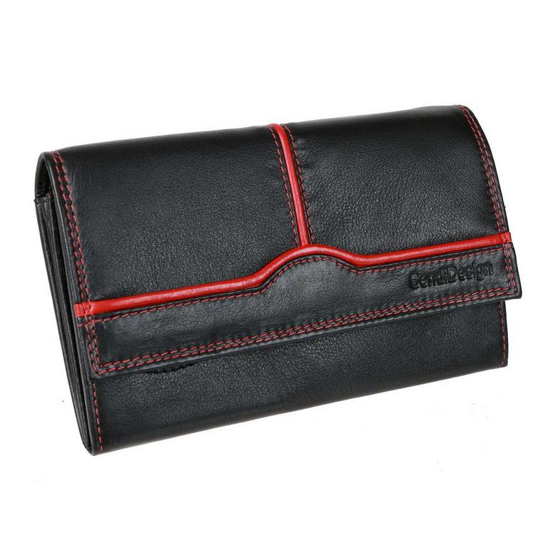 Dámska bezpečnostná peňaženka veľkého listového formátu značky SENDI DESIGN - luxusný dizajn a spracovanie, nappa koža v elegantnom čierno-červenom prevedení.