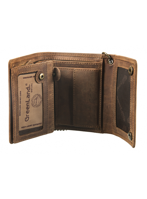 Unikátna a precízne spracovaná kožená peňaženka GreenLand MONTENEGRO s možnosťou skladania, uzatvorená 2 kovovými patentmi. Peňaženka s RFID ochranou kariet.